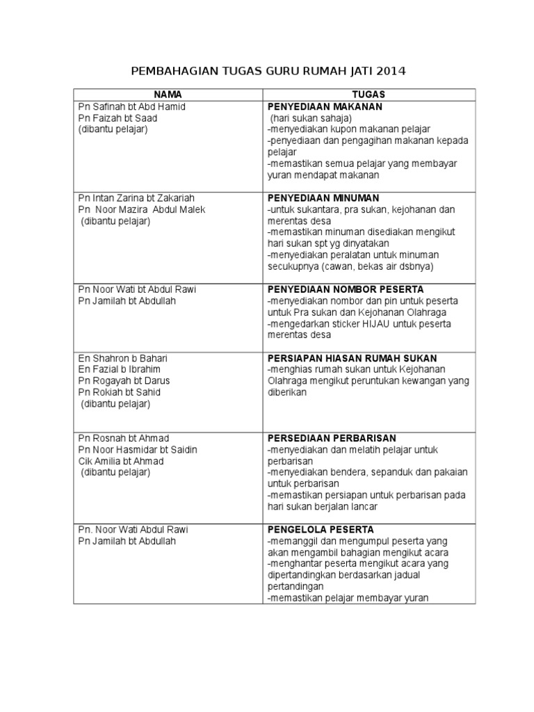 Pembahagian Tugas Guru Rumah Jati Pdf